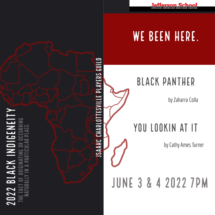 Staged readings of Zaharra Colla’s Black Panther and Cathy Ames Turner’s You Lookin At It will be presented for two nights with discussions post show to aid these playwrights in finalizing their works before full productions.