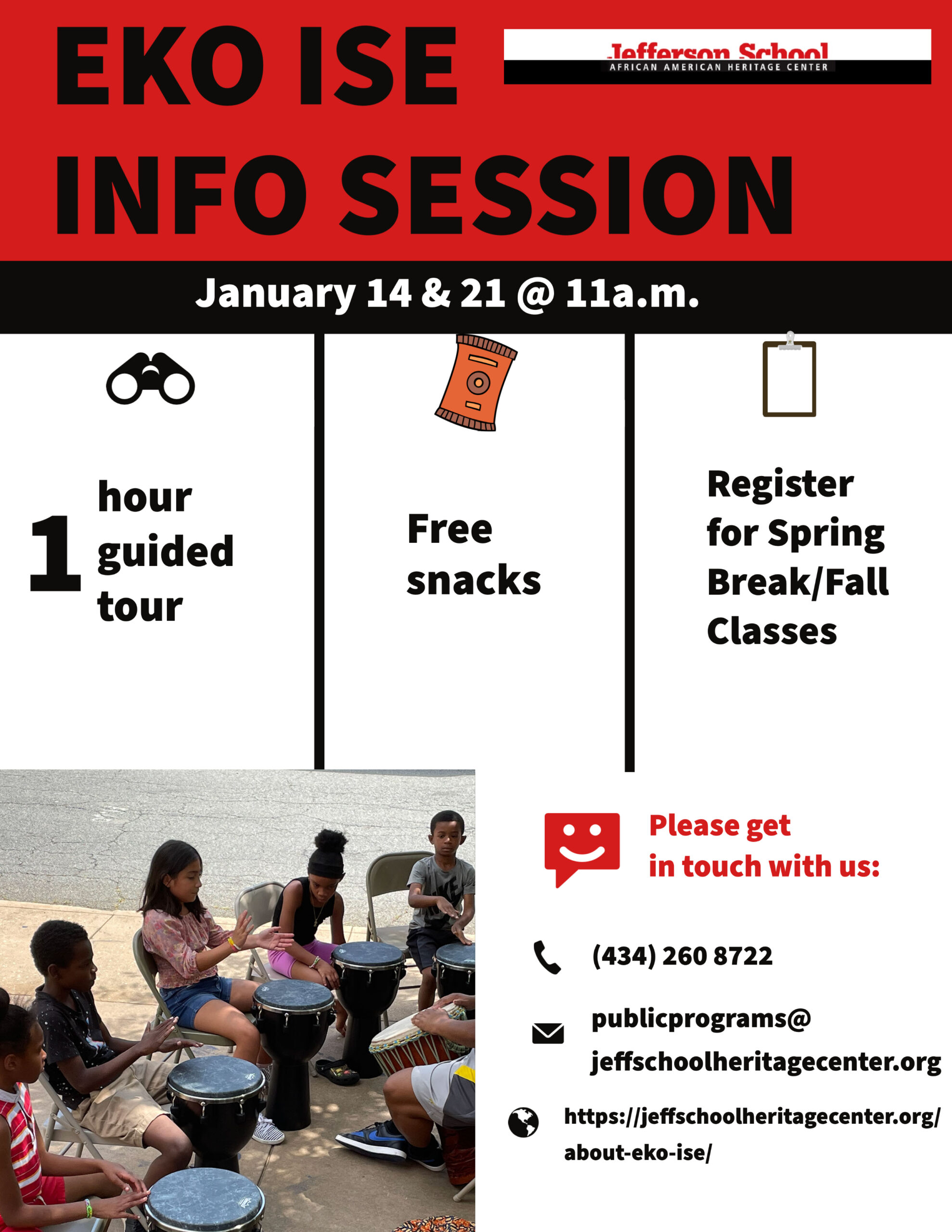 January 14 & 21 at 11 a.m. JSAAHC will have info sessions about upcoming classes for Eko Ise. Children ages 4 and up and their parents are encouraged to attend.