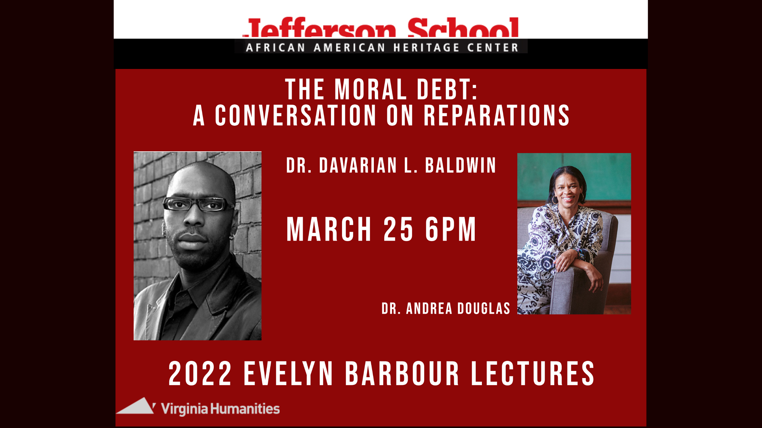 In 2022 the Jefferson School African American Heritage Center will host a series of two-day conversations on the subject of reparations, funded in part by a grant from Virginia Humanities. On the first day a public lecture will be offered by invited speakers who are leading the reparations conversation across the nation. On the second day the Center will host a breakfast conversation for local groups interested in the subject.