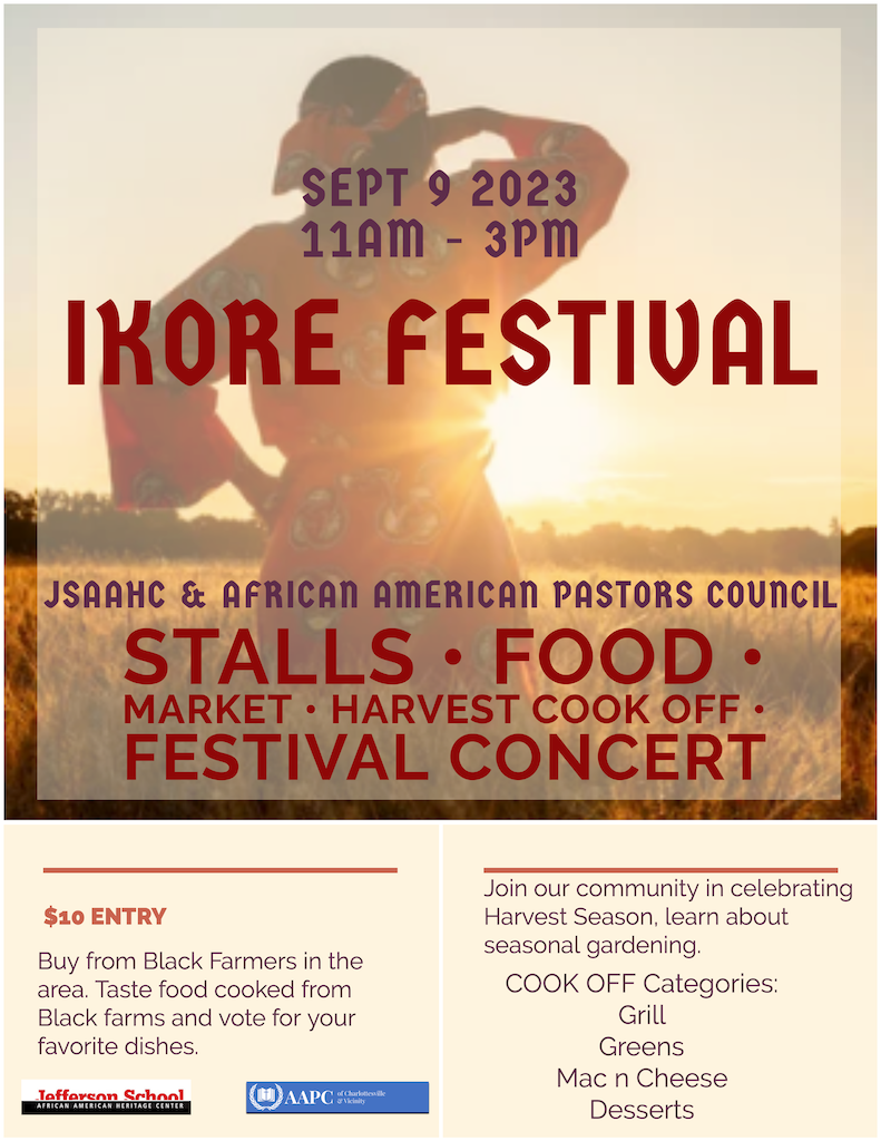 JSAAHC and the African American Pastors Council come together to create a harvest festival to be held on September 9 from 11am to 3pm on the front yard of the Heritage Center.